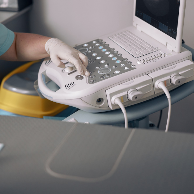 An ultrasound machine is a crucial medical imaging tool that employs high-frequency sound waves to generate images of internal body structures. It comprises a transducer, which emits and receives the sound waves, a console for control and processing, and a display screen for image visualization. Operators manipulate the device by adjusting settings via a keyboard and controls on the console. Before scanning, a gel is applied to the skin to aid in sound wave transmission. These machines are widely used across medical settings for diagnostics, such as examining organs, monitoring pregnancies, and guiding procedures, offering real-time insights into the body's internal workings in a non-invasive and safe manner.